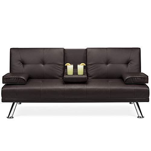 Enjoy the best in stylish functionality and comfortable lounging. This convertible futon is crafted with faux leather and 4 chrome-metal legs to bring sleek style to any apartment or studio space. Its backrest easily reclines while the side...