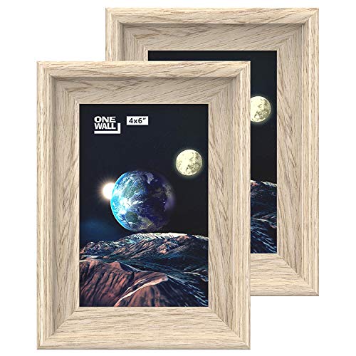 ONE WALL 4x6 Picture Frame Light Brown, PS Photo Frame for Wedding, Certificate, Family and Baby Pictures, Wall & Tabletop Display - Wall Mounting Hardware Included, 2 Pack ?Stylish Design?2-pack 4 x 6 photo frames made of environmental-friendly...