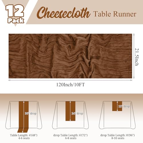 Click for More Images Package Include: You will get 12 pieces brown cheesecloth table runner, the size of each cheesecloth table runner is about 21 x 120 inches/10ft, which is large enough to dress up most rectangle and round tables, enough...