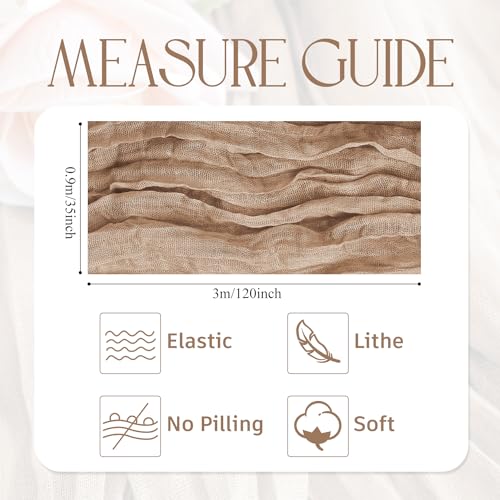 Click for More Images ?Cheesecloth Table Runner? You will get 6 pieces, 35" Wx120" L(10ft)length nude brown table runner. The boho table runner are designed with textured gauze fabric, which is not easy to fade, does not shrink, has elasticity,...