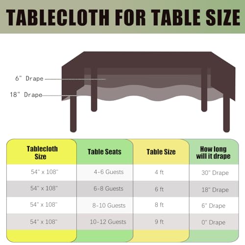 Click for More Images Brown Table Cloths: There is a pack of Brown plastic tablecloth for covering any table up to 8 ft.Plastic Tablecloths: Made of high quality durable plastic peva which is waterproof and good drape.Disposable Tablecloths:...