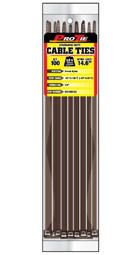 ProTie Brown Standard Duty Color cable ties are made from high strength and lightweight 6/6 nylon. Nylon 6/6 is a hygroscopic material, which absorbs and releases moisture, is non-toxic, and has a working temperature range of-40 to 185-Degree F...