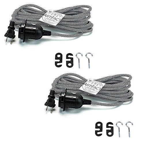 Each Fabric Cord Length: 15' 5" Includes 2 hooks and ceiling clips. Max. load 4lb 2 Pack unique design 15' 5" Fabric cord allows you to raise or lower the light.Uses basic E-26 light bulb up to 60 Watt is not includedEasy to use ,you just need to...