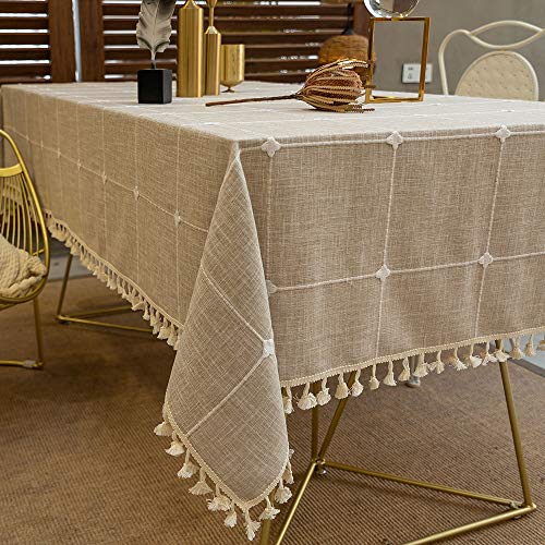 Square Tablecloth, TEWENE Table Cloth Cotton Linen Wrinkle Free Anti-Fading Checkered Tablecloths Washable Dust-Proof Table Cover for Kitchen Dinning Party (Square,55''x55'',4 seats, Light Brown)Soft&High-Quality Cotton Linen Material The table...