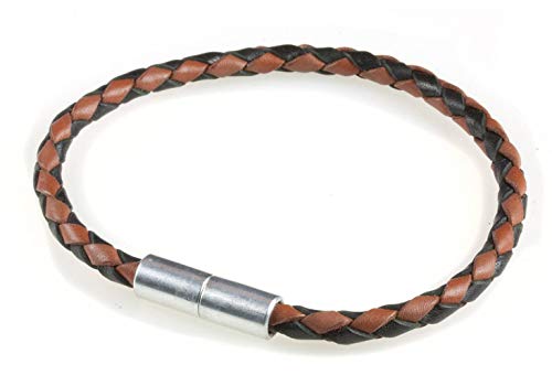 Made from high quality braided leather, the handsome 4mm bracelet from SukiUSA has a minimalist appeal. With 5 sizes to choose from you get a great fit. The aluminum clasp contains strong magnets and is simple for the wearer to fasten with one...