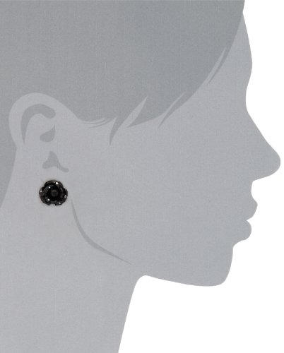 Click for More Images Sparkly black glitter flower stud earrings embellished with a delicate black stone accent at center. Earrings are set in black plated metal with a post back closure.Black-plated metal with glassLength: 0.6"Width: 0.6"Post...