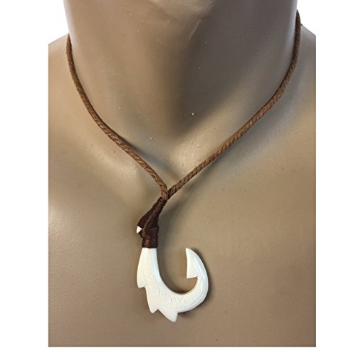 Click for More Images The bone is hand carved from water buffalo(bubalus bubalis) bone.Fish hook is about 1.75 inches in heightLength is fully adjustable brown cord More Information...