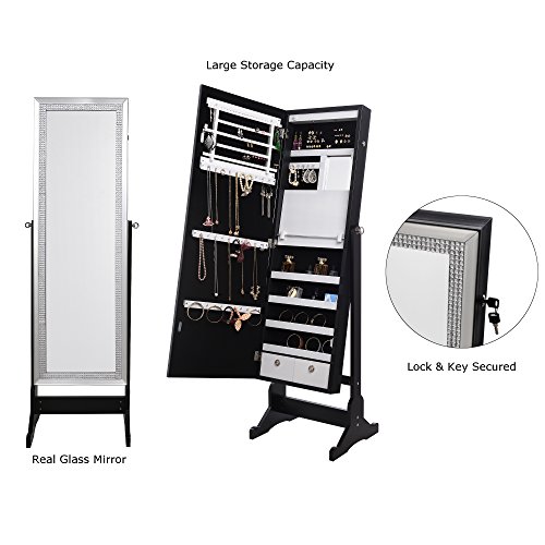 Click for More Images 50 cushioned ring holdersSafe & secure storage - features a lock and key to protect jewelry, makeup or other accessoriesLed light equipped - enhanced inner LED lightning to illuminate the jewelry armoire More Information...