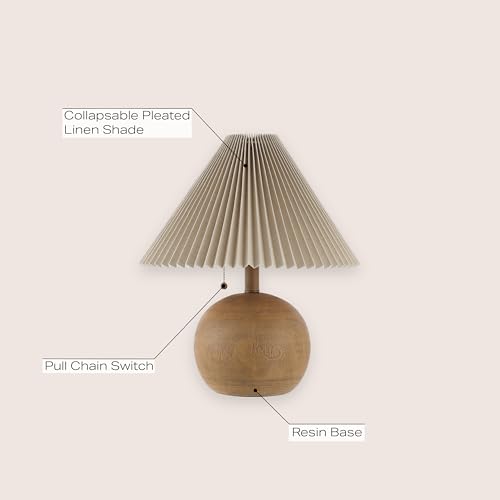 Click for More Images Add warmth to a modern interior with this lamp's cork-brown base and beige linen shadeQuality touches include a pull-chain switch and silk-wrapped cordAdd vintage Scandinavian style to a home office, or use a pair for...