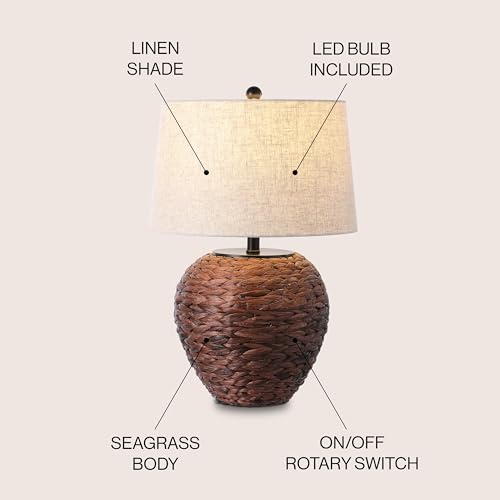 Click for More Images Vintage farmhouse design: This pair of table lamp for bedroom designs features an antique twine woven body and linen fabric lampshade. The soft, natural brown exterior makes this living room lamp not only look simple and...