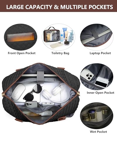 Click for More Images TRAVEL DUFFEL BAG WITH SHOE COMPARTMENT+FREE SEPERATE TOILETRY BAG - Separate flat bottom compartment of this weekender bags for women can hold your shoes or dirty clothes for easy separation from clean clothes when...