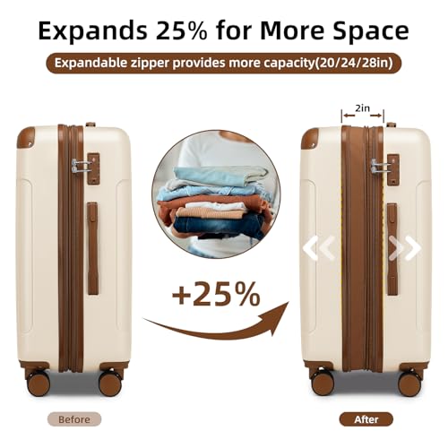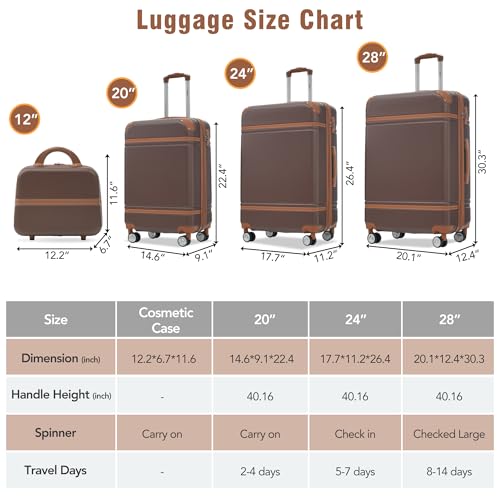 Click for More Images 4 Piece Suitcase Sets: 1 Cosmetic case and 20 inch,24 inch,28 inch upright luggage set can be stored one into another.20in small luggage is best for carryon (not expandable),only 24in & 28in can expand 25% for more...