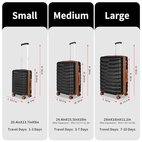 Click for More Images 3 Piece Set: Set contains a carry-on 20" luggage, a 24" checked suitcase, and a 28" large luggage. Specifically designed for 24 and 28 inch luggage, the extension layer adds more capacity to maximize your packaging...