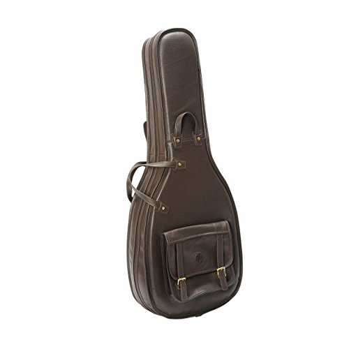 Leather gig bag for acoustic guitar, with 1 inch foam padding plus end-pin suspension padding, plush lining with leather string and bridge protectors, neck stabilizer compartment, leather handles, double zipper pulls, 2 inch adjustable...