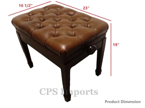 Click for More Images 100% GENUINE LEATHER padded cushioned top with 17 buttons deep diamond tufted seatFrame, legs and adjusting knobs are made of 100% SOLID HARD WOOD with HEAVY DUTY mechanism for long lasting durability23" long and 16.5" deep....