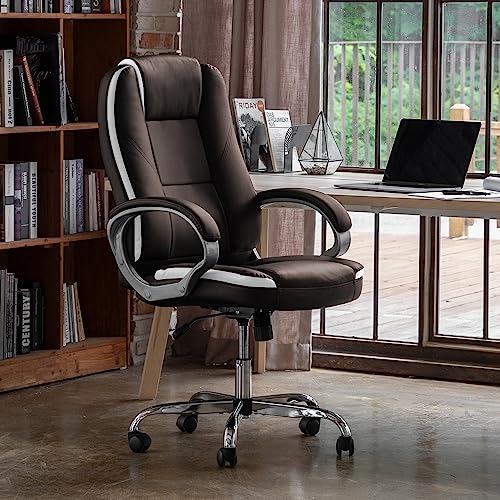 Click for More Images [Leather Office Chair] Made of soft and comfortable PU leather and high elastic sponge cushion, excellent sitting sensation. Modern desk chair is stain resistant, wear resistant, waterproof and easy to clean, suitable for...
