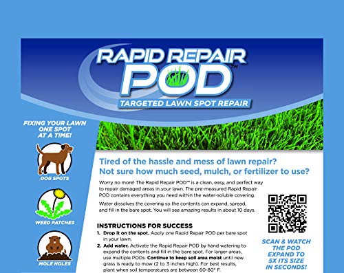 Click for More Images Targeted Lawn Spot Repair PODWater to Expand in secondsContains Grass Seed, Mulch & FertilizerNo tools needed, just water.Perfect for Dog Spots, Bare Spots, Mole Holes, and Insect Damage in your lawn. More Information...