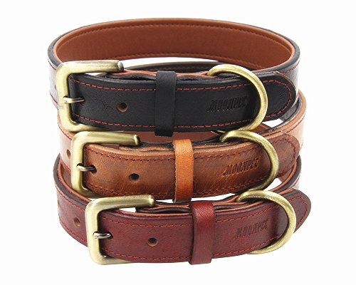 We offer this affordable genuine leather collar with solid brass hardware. These collars are strong and durable, soft & adjustable. Our pet collars may fit dogs of most breeds. Leather dog collar benefits: - Various size: adjustable, small,...