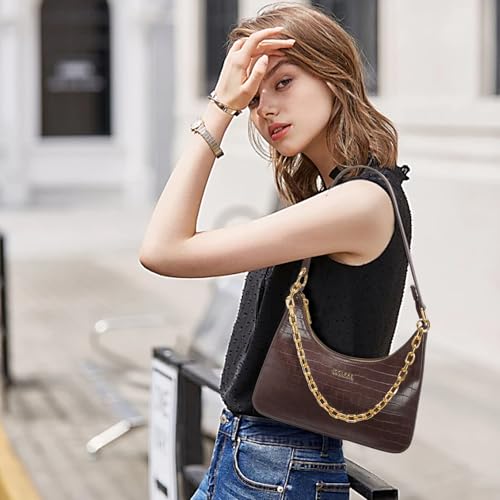 Click for More Images Womens Purse Perfect Size: This small leather purse measures 8.85 x 5.5 x 2.9 inches, providing ample space for your necessities without being bulky. This black shoulder bag comes with a chain shoulder strap, which can be...