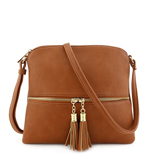 This light weight medium size crossbody bag makes easy to organize your everyday items. 10" (W) x 9" (H) x 0.5" (D)Zipper closure & front zipper is a functional pocketAdjustable shoulder strap with 25.5" dropFaux leather & gold tone hardware1...