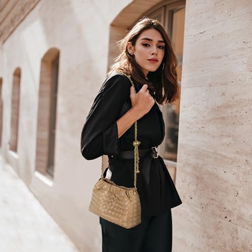 Click for More Images Hand-woven Leather and Stylish Ruched Design:Crafted from high-quality woven leather, this dumpling bag blends softness with durability, maintaining its graceful shape over time. The chic ruched design adds elegance, making...