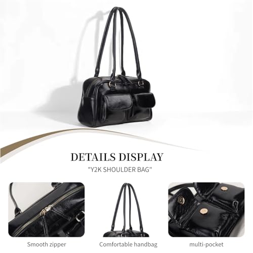 Click for More Images Chic Y2K Retro Design?This trendy shoulder bag combines a Boston-style structure with an underarm design, ideal for work, shopping, or partiesDurable Vegan Leather?Made from lightweight vegan PU leather with smooth zippers...