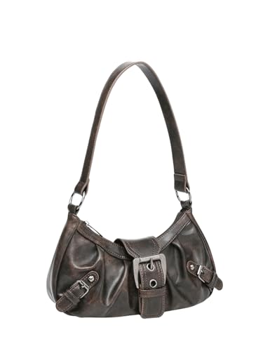 Verdusa Women’s Y2k Purse Top Handle Shoulder Bag Buckle Punk Hobo Clutch Purses Bags Brown One-Size