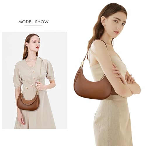 Click for More Images Made of soft faux leather fabricAdjustable Straps, Buckle and Zipper Closure, Pu Leather, Medium Size, Vintage Crescent BagPerfect for various occasions like shopping, dating, work, party, street, or as a giftThe hobo bag is...