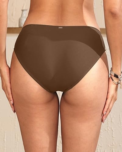 Click for More Images Features: The mid-rise with a slightly lower fit makes the brown bikini bottom unique, shaping your silhouette while offering comfort and support. The regular cut provides more coverage, blending a touch of retro and classic...