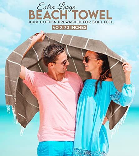Click for More Images Pack of 2 - The set of 2 Turkish Beach Towels measuring 40 x 72 inches each. They are super convenient to use and provide maximum absorbency.Luxurious - Crafted with 100% premium cotton fabric, the large beach towel is...