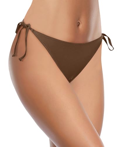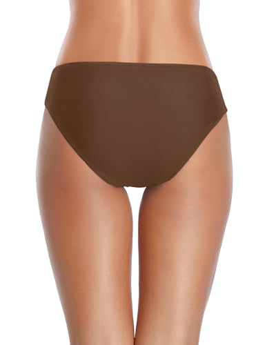 Click for More Images V Cut Swimsuit Bottoms: Twist band bikini bottoms feature v cut detail at front, show your curve perfectly, make you look more flattering and chic.Brown Swim Bottoms: Light purple swimsuit bottom feature ruched design at...