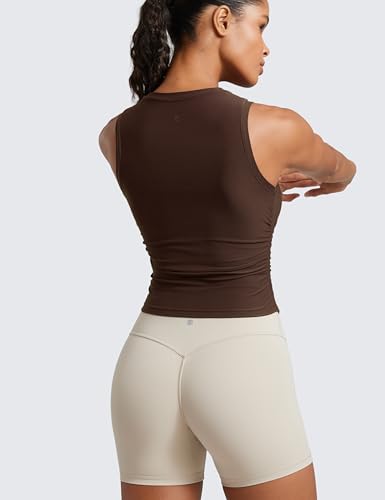 Click for More Images Designed for workoutLight and soft to feel like a cloud. Stretchy, breathable, moisture wicking and dries fastTight fit, waist lengthSide ruching design with slim fit keeps the top moving with you while flattering your...
