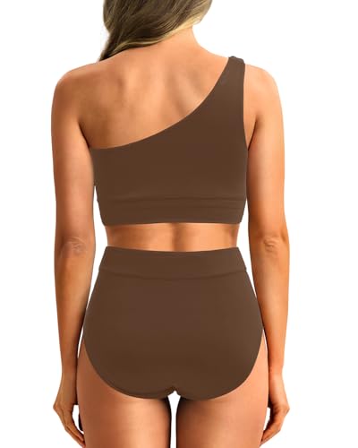 Click for More Images Two Piece Swimsuit:This long-line, one-shoulder bikini top features wide straps and removable pads for ample support, ensuring you stay in place and feel secure.High Waisted Bikini Sets:The high-waisted bikini bottom with...