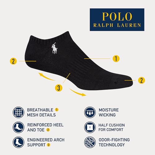 Click for More Images Delight in careful craftsmanship found in the perfect pair of socks from Polo Ralph LaurenSignature embroidered details exemplify class and sophisticationClassic performance and style effortlessly elevate your athletic and...
