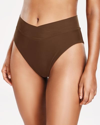 Click for More Images High Waisted Bikini Bottoms: High rise bikini bottoms with a V-cut crossover design accentuate a slim waistline, making you look more flattering.High Leg Bikini Bottoms: The high cut bikini bottom makes your legs look...