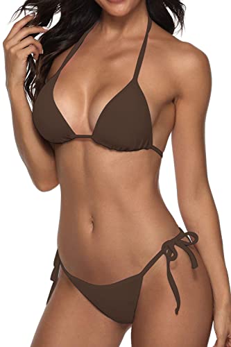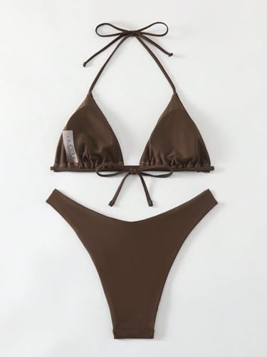 Click for More Images Crafted with 80% Polyamide and 20% Elastane, this bikini set provides high stretch for an ideal beach fitThe halter triangle top and tie-back design of this solid swimsuit make for a sexy and sleek beachwear choiceGreat for...