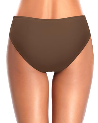 Click for More Images Brown Ruched Bikini Bottom: The swim bottom features a flattering ruched panel at both sides, which will hide your insecurities while still being stylish.Full Coverage Bikini Bottom: The full-coverage bikini bottoms scrunch...