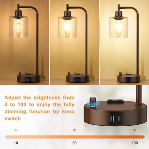 Click for More Images STEPLESS DIMMABLE LAMP - You can turn on/off and turn up/dim the lights by rotating the dimmer knob. The operation is simple and suitable for people of any age. Compared to 3-way dimming lamp, this bedside lamp has more...