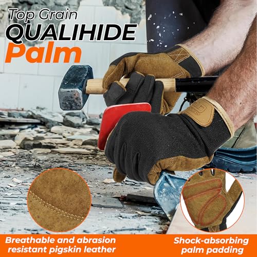Click for More Images Premium Materials & Design: HANDLANDY gloves feature upgraded QUALIHIDE pigskin palms with enhanced wear resistance, delivering a tough barrier against tears and abrasion for secure grip. Breathable mesh backs ensure...