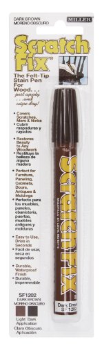 An easily blended, instantly drying wood pen for making dents, scrapes, scuffs and stains disappear forever. The pen contains actual wood stain instead of ink, making it absorb deeper into the wood, matching wood color and existing stain better....