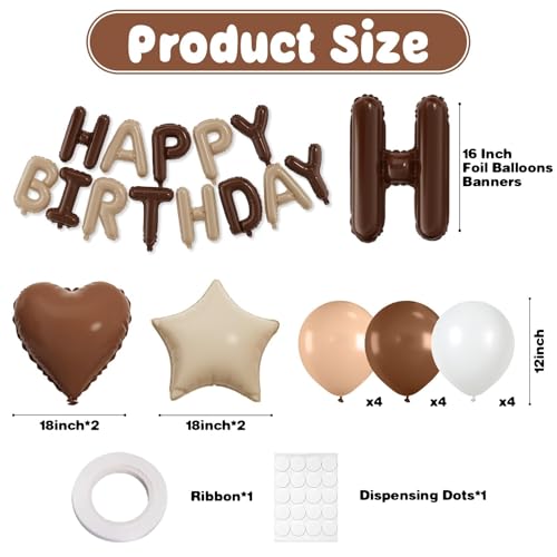 Click for More Images ?Package Contains?In Paready Cream HAPPY BIRTHDAYBalloons set, you'll receive: 1 x 16 inches cream "HAPPY BIRTHDAY" foil balloon banner, 2 x 18 inches cream star foil balloons, 2 x 18 inches brown heart foil balloons, 4 x 12...