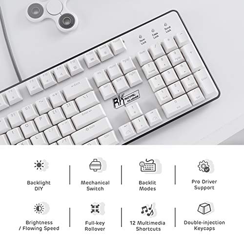 Click for More Images [Mechanical brown switch]: feature button sound is quiet, the resistance is small, a good balance of click switch and linear switch performance in terms of acoustic feedback and triggering.[Classic charming white LED...