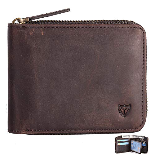 DONWORD Zipper Wallet Benefits Multi Card Holder - hold 13 cards, ID card, coin, TF card, SIM card, 100% cow leather, crazy horse leather. Enough space to put cards and cash. Bifold style, vintage look. RFID blocking prevent for theft black,...
