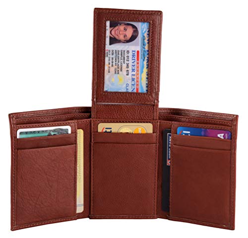 Classic Tri fold design with elegant aesthetics. 8 credit card slots, 3 concealed slots inside the wallet, 2 currency pockets and 1 clear ID window. Made in Natural Dry Milled Leather Classic Tri fold design with elegant aesthetics8 credit card...
