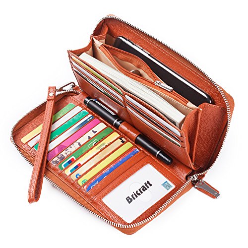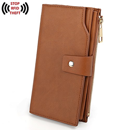 BESWILL Wallet Women RFID Blocking Large Capacity Luxury Wax Genuine Leather Clutch Wallet ? Our RFID wallets are lined with enhanced RFID blocking layer to offer complete protection against unauthorized RFID scans, which can easily protect...