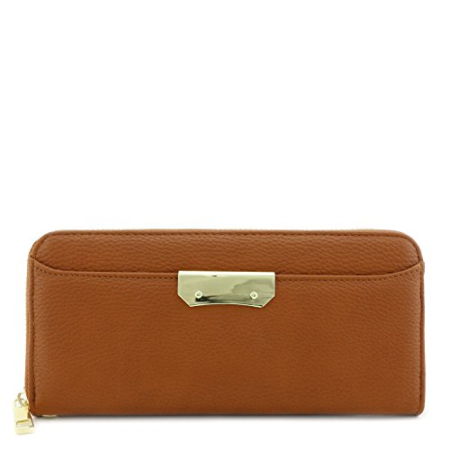 This stylish zip around faux leather wallet with wrist band is perfect for everyday use 7.75" (L) x 3.75" (H) x 1" (D)Zipper closure & slip pocket in frontFaux leather & gold tone hardwareDetachable 8" wrist strap8 card slots, 2 bill slots & 1...