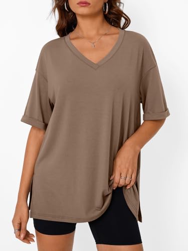 Click for More Images Material: The fabric is high quality,soft and lightweight, comfortable to wear and keep you comfy everyday in spring and summer.Design:Oversized workout shirts for women,short sleeve shirtrs,plus size,round neck,loose fit...