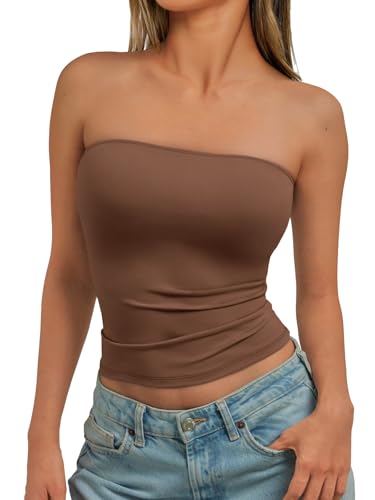 Click for More Images Material?Basic y2k tube top solid bandeau is made of 88% Polyester,12% Spandex.Super soft, lightweight, stretchyDesign?The cute tube top,warp strapless cami top, cute summer backless sleeveless going out top, slim fit...