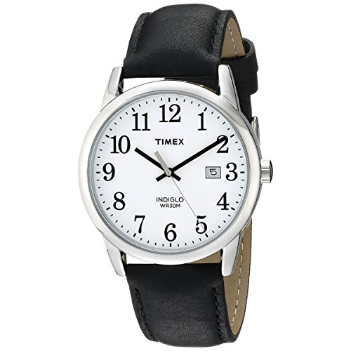 As popular as ever, the Timex® Easy Reader® continues to be one of the most recognizable watches around. Celebrate with this 40th Anniversary timepiece. Leather strap with adjustable buckle closure. Silver-tone polished case. INDIGLO® night...