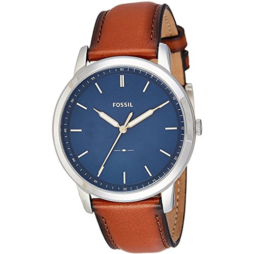 Watch Sizing Guide A clean look never goes out of style with this sleek watch from Fossil®! Stainless steel case. Leather strap with adjustable buckle closure. Round face. Three-hand analog display with quartz movement. Dial features...